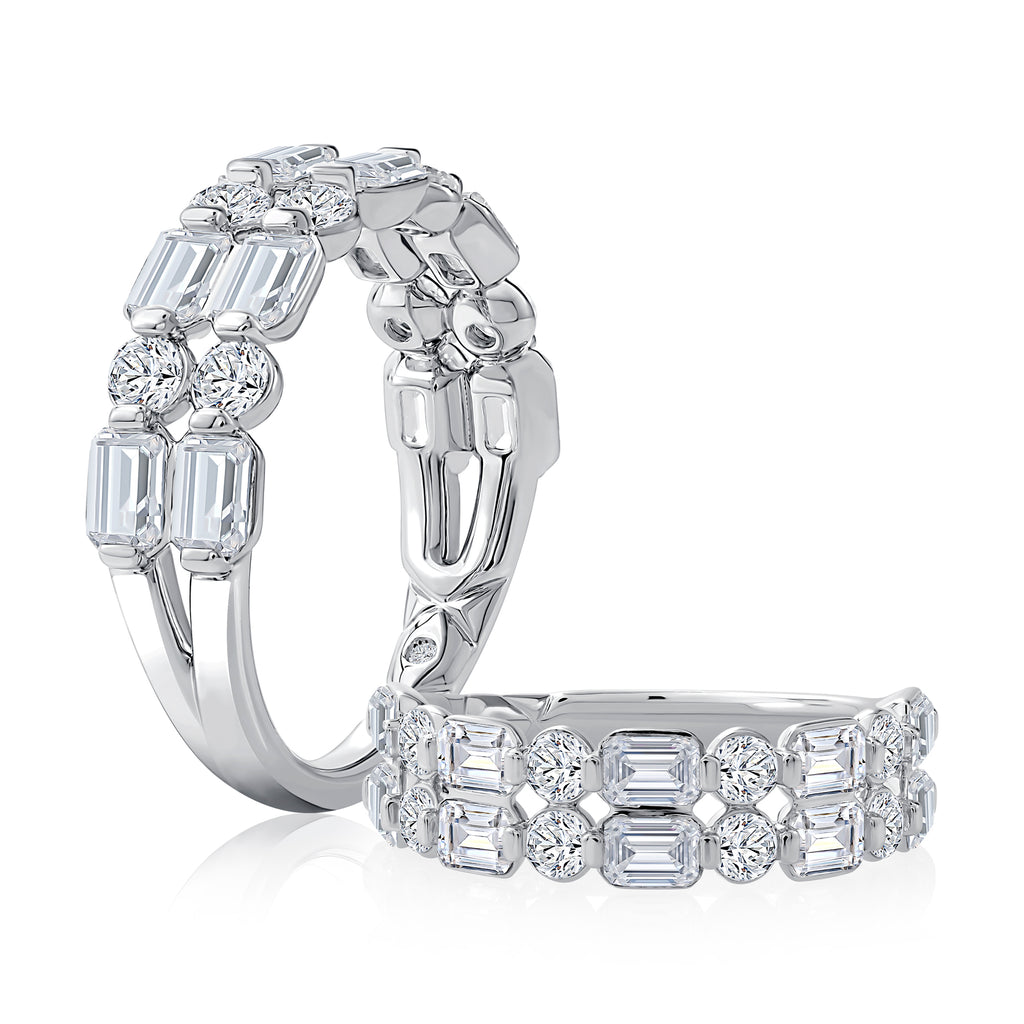 Natural Diamond Natural Diamond Ladies Wedding Band in 14 Karat White with 10 Emerald Diamonds, totaling 1.50ctw, and 9 Round Diamonds, totaling: 0.49ctw Ring Size: 6