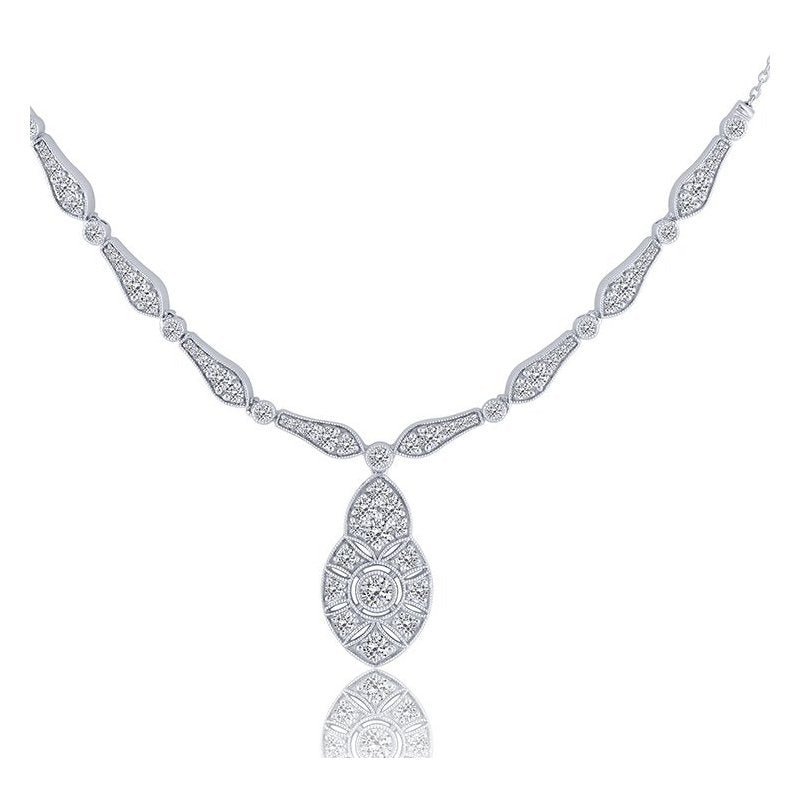 Discover the breathtaking allure of the Equity Diamond Brokers Natural Diamond Necklace, where elegance meets timeless beauty. Expertly crafted from radiant 14 Karat White Gold, this exquisite necklace showcases 1.75 carats total weight of round natural diamonds, renowned for their mesmerizing sparkle and brilliance. Each diamond is meticulously set to enhance its ability to capture and reflect light, presenting a dazzling display with every movement.