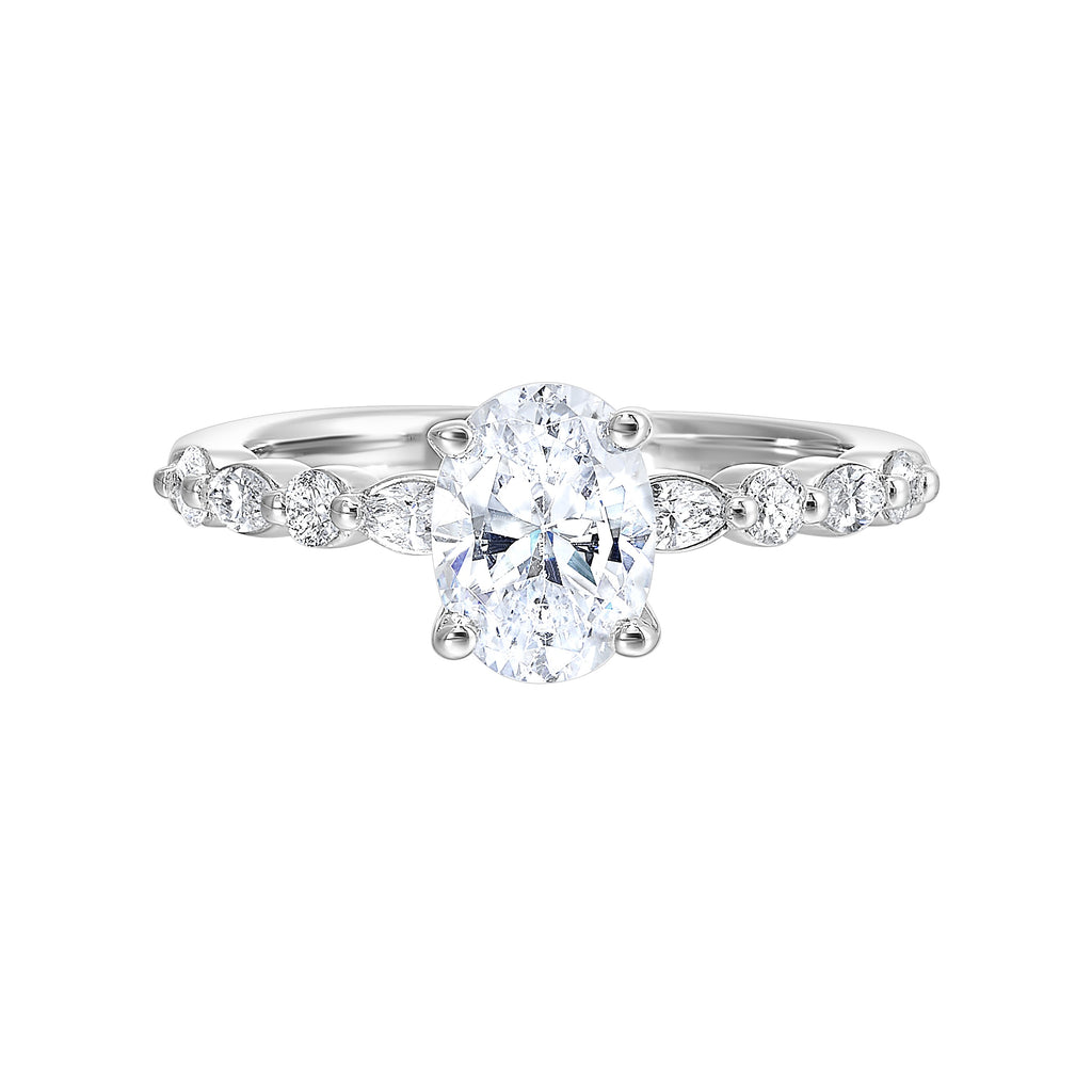 Side Stone Natural Diamond Semi-Mount Engagement Ring in 14 Karat White with 8 Various Shapes Diamonds, totaling 0.36ctw Ring Size: 6.5 MM Width: 1.9 Collection: M Marks 89 **Center Diamond Sold Separately