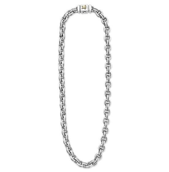 Discover the epitome of elegance with the LAGOS Necklace, a stunning piece that embodies timeless style and exceptional craftsmanship. This exquisite necklace, crafted from premium sterling silver, shines in a sophisticated white hue, showcasing its lustrous beauty without the need for stones. The 20-inch cable link chain offers a harmonious blend of classic and contemporary aesthetics, making it the perfect accessory for any outfit.