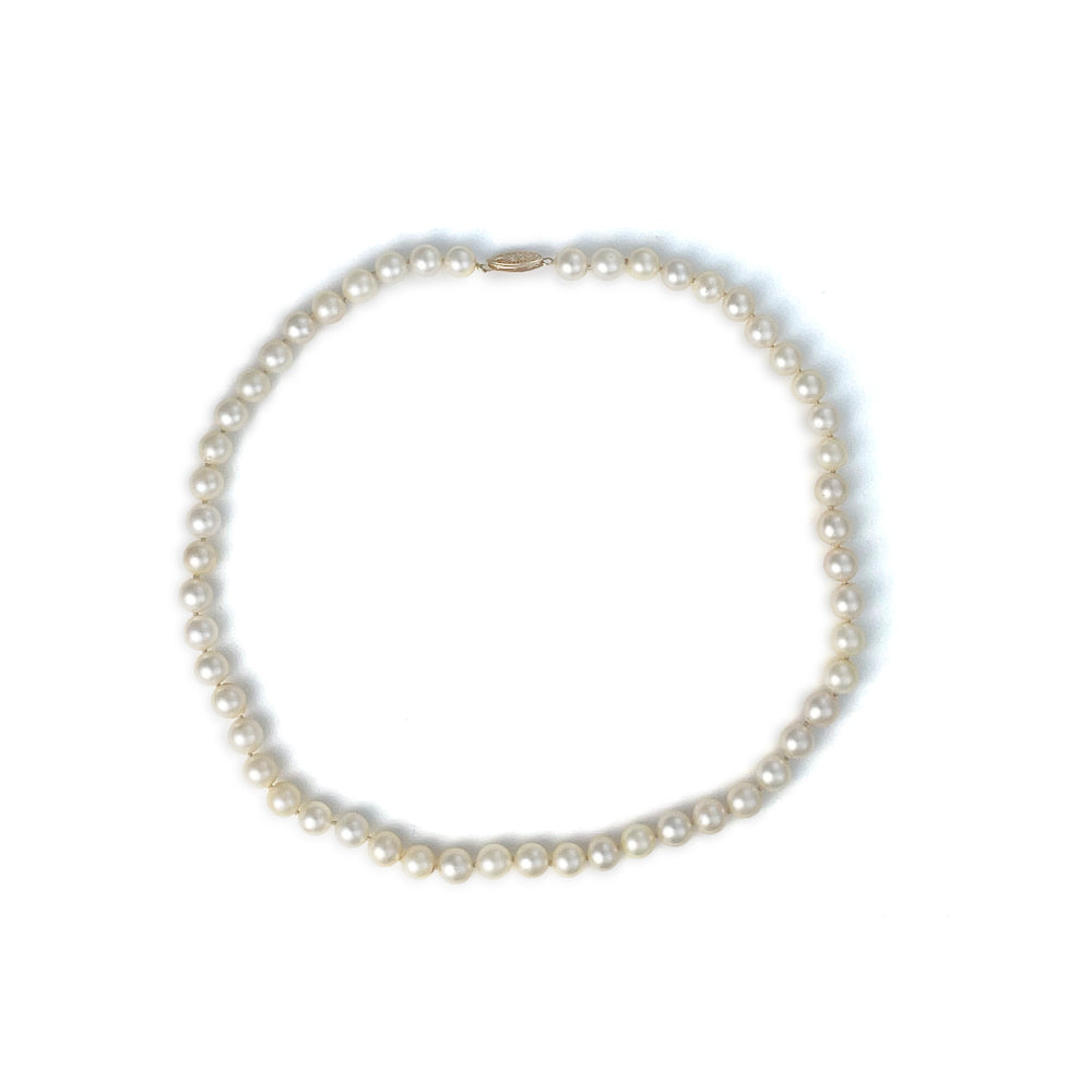 At the heart of the ReMARKable Estate collection lies exceptional craftsmanship, where each pearl is chosen and set to highlight its individual beauty. The skillful refurbishment by expert artisans ensures this estate piece retains its original charm. Every element of this necklace stands as a testament to the high standards of quality and artistry that define the ReMARKable Estate brand. Each pearl is set to accentuate its natural hue and luster, showcasing the brand's dedication to precision and elegance.