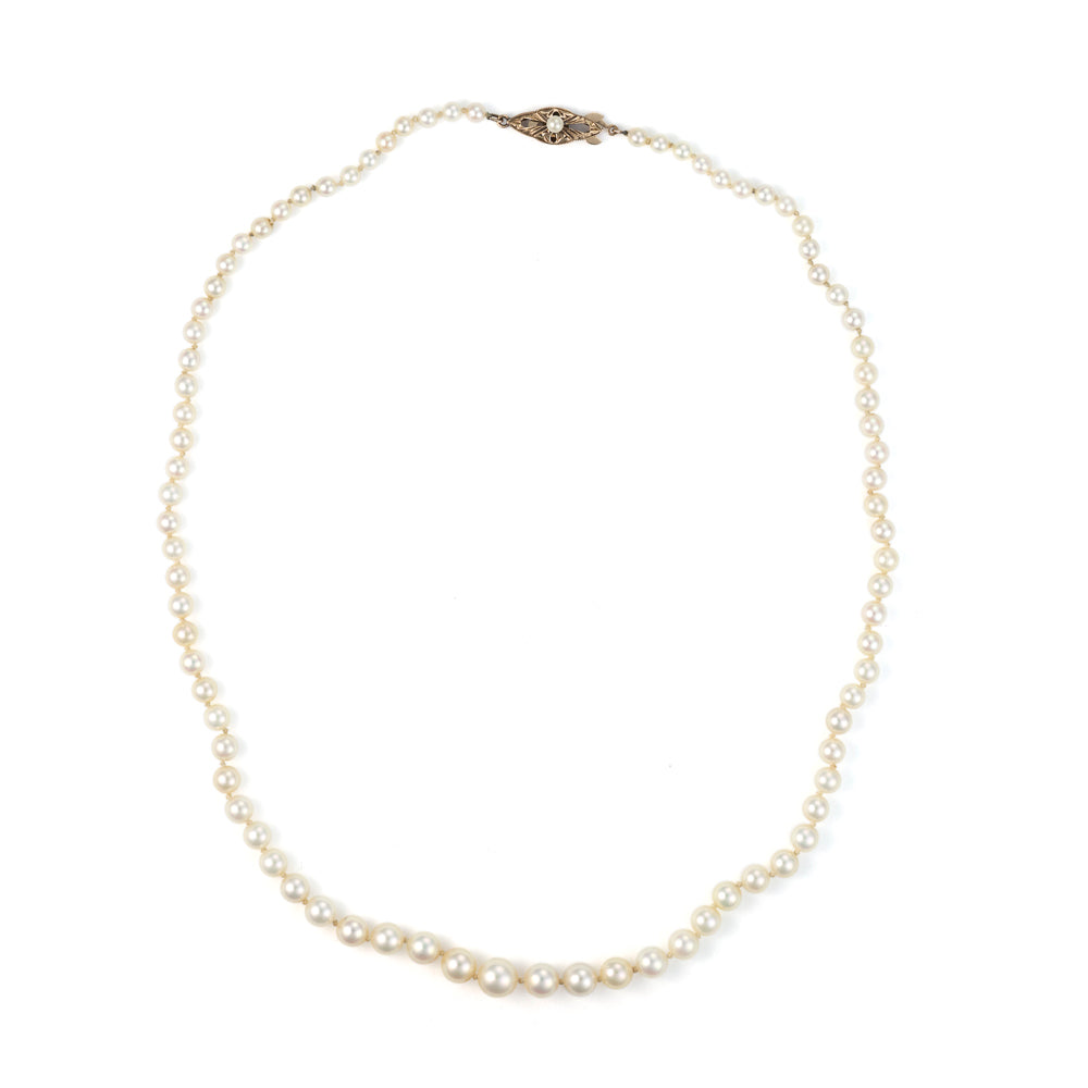 Color Gemstone Necklace in 14 Karat Yellow with 83 Cultured Pearls, Color: Cream Chain Type: No Chain Chain Length: 18 Clasp Type: No Clasp Necklace Type: Pearl Strand Collection: M Estate "This item is an estate piece of jewelry, often one-of-a-kind, and has been previously owned. It has been refurbished by our master jewelers to be enjoyed again."