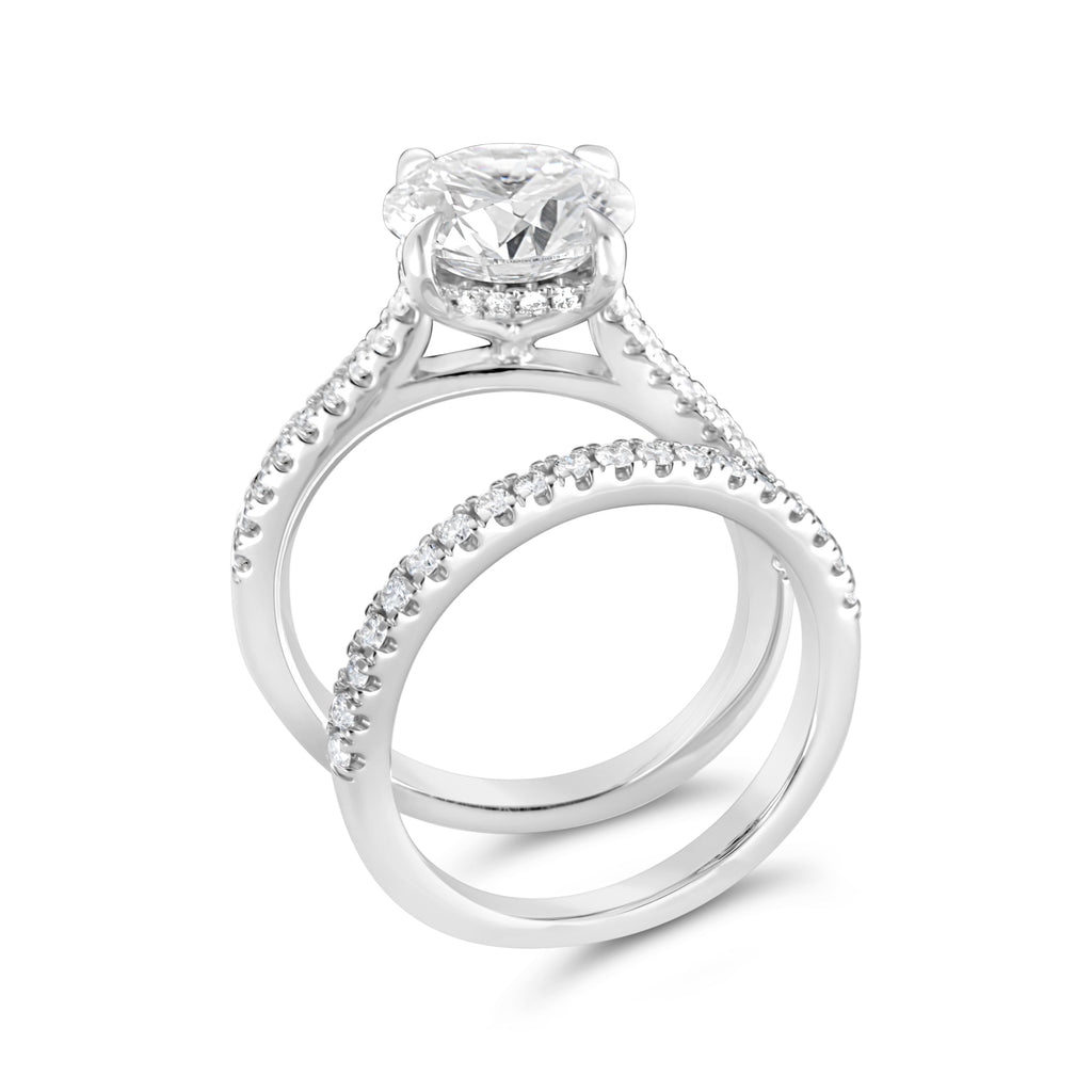Discover the Mercury Ring Hidden Accent Lab-Grown Diamond Complete Engagement Ring, a masterpiece of elegance and sustainability. Crafted by Mercury Ring, this stunning engagement ring boasts a total carat weight of 3.09. At its heart is a dazzling round lab-grown diamond, showcasing an impeccable F color and VS1 clarity. Enhancing its brilliance are 34 meticulously set side stones, totaling 0.30 carats, all in radiant 14 Karat white gold. The sleek 2mm band, available in size 6.75, is a testament to modern design and superior craftsmanship.