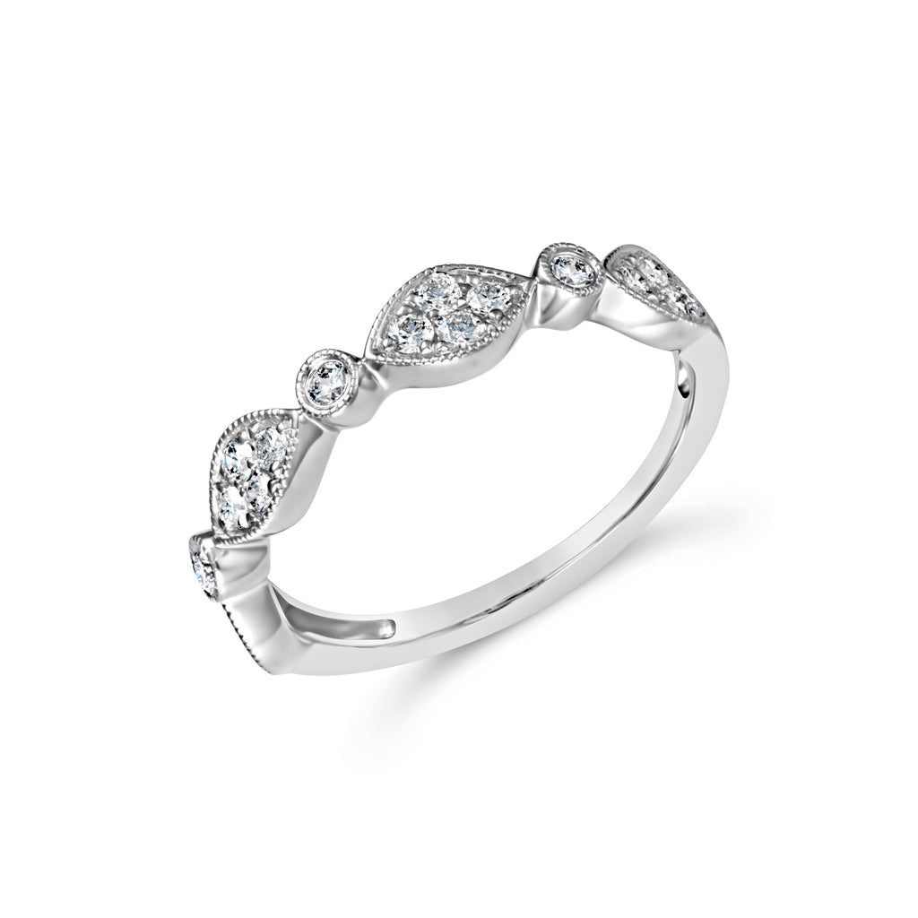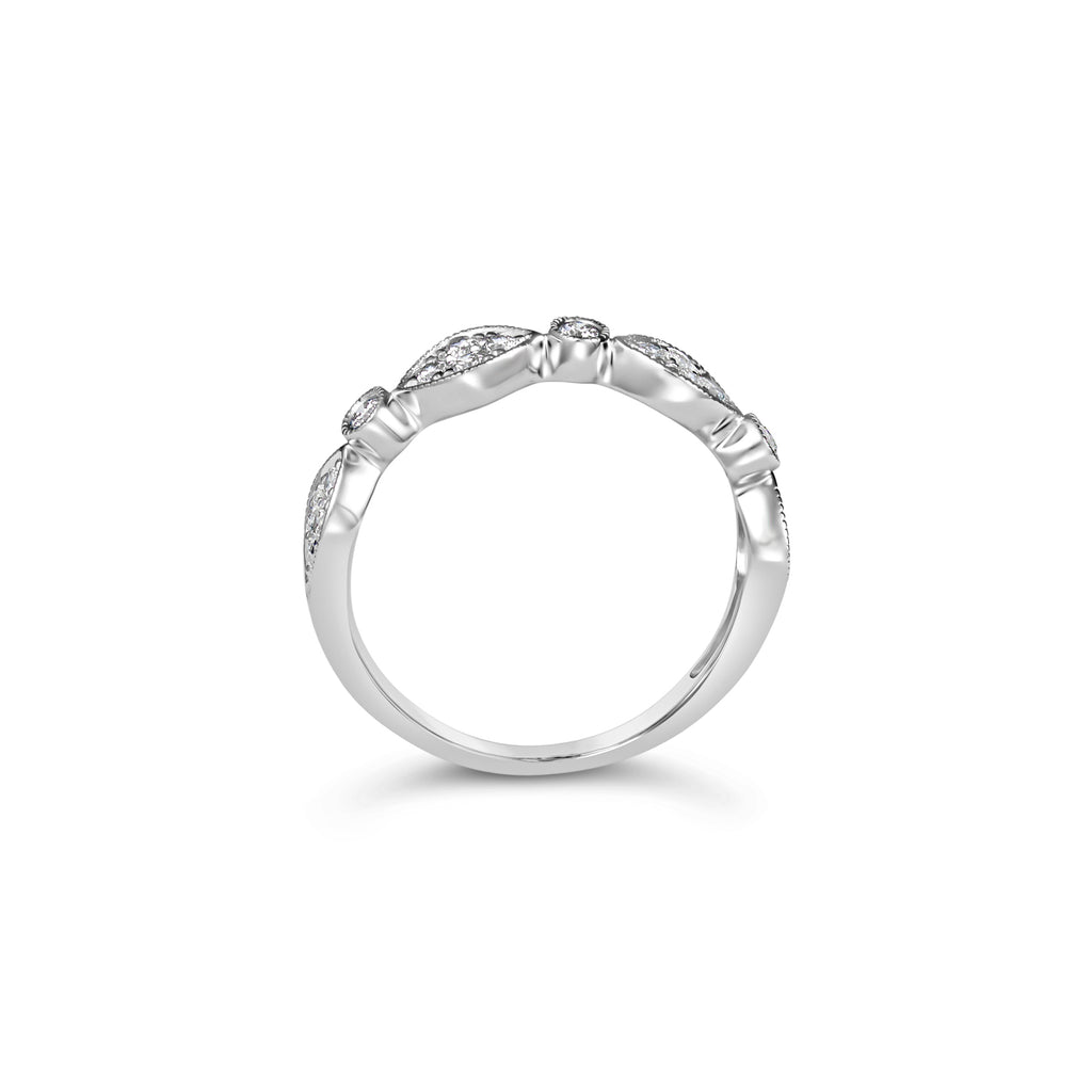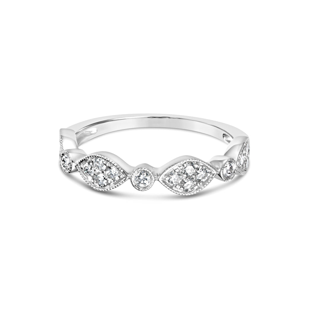Celebrate the timeless elegance and unmatched craftsmanship of the VIMCO DIAMOND CORP. Stackable Natural Diamond Ladies Wedding Band. Expertly fashioned from 14 Karat white gold, this exquisite band showcases a radiant sheen that enhances the dazzling brilliance of its 19 earth-mined, round natural diamonds. Weighing a total of 0.35 carats, each diamond is selected for its exceptional clarity, ensuring a sparkle that captures every glimmer of light.