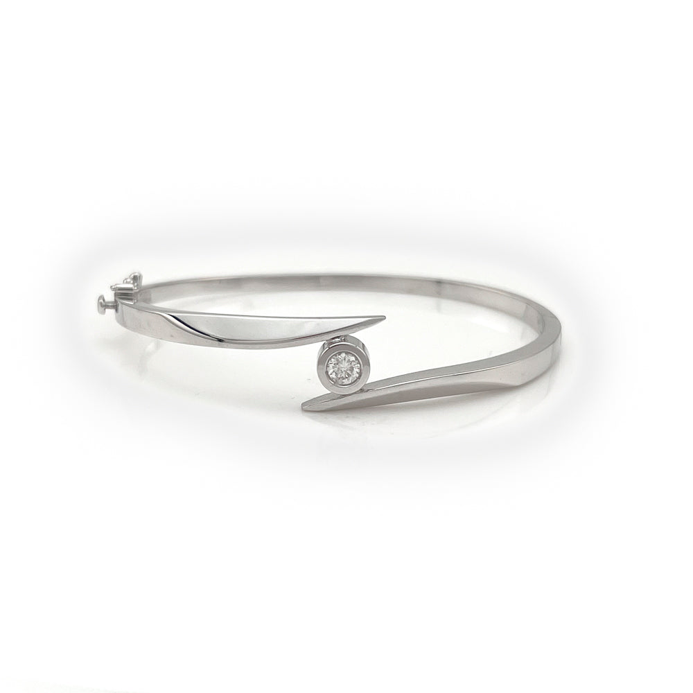 Elevate your jewelry collection with the Natural Diamond Bracelet from ReMARKable Estate. This exquisite bangle, crafted in lustrous 14 Karat White Gold, features 0.40 carats of genuine round diamonds. Each stone showcases an alluring I/J color and I1 clarity, ensuring a dazzling sparkle. Measuring 7 inches in length, it elegantly encircles the wrist and is secured with a discreet hidden plunger clasp, combining both comfort and style.At ReMARKable Estate, superior craftsmanship is evident in every detail of this sophisticated piece.
