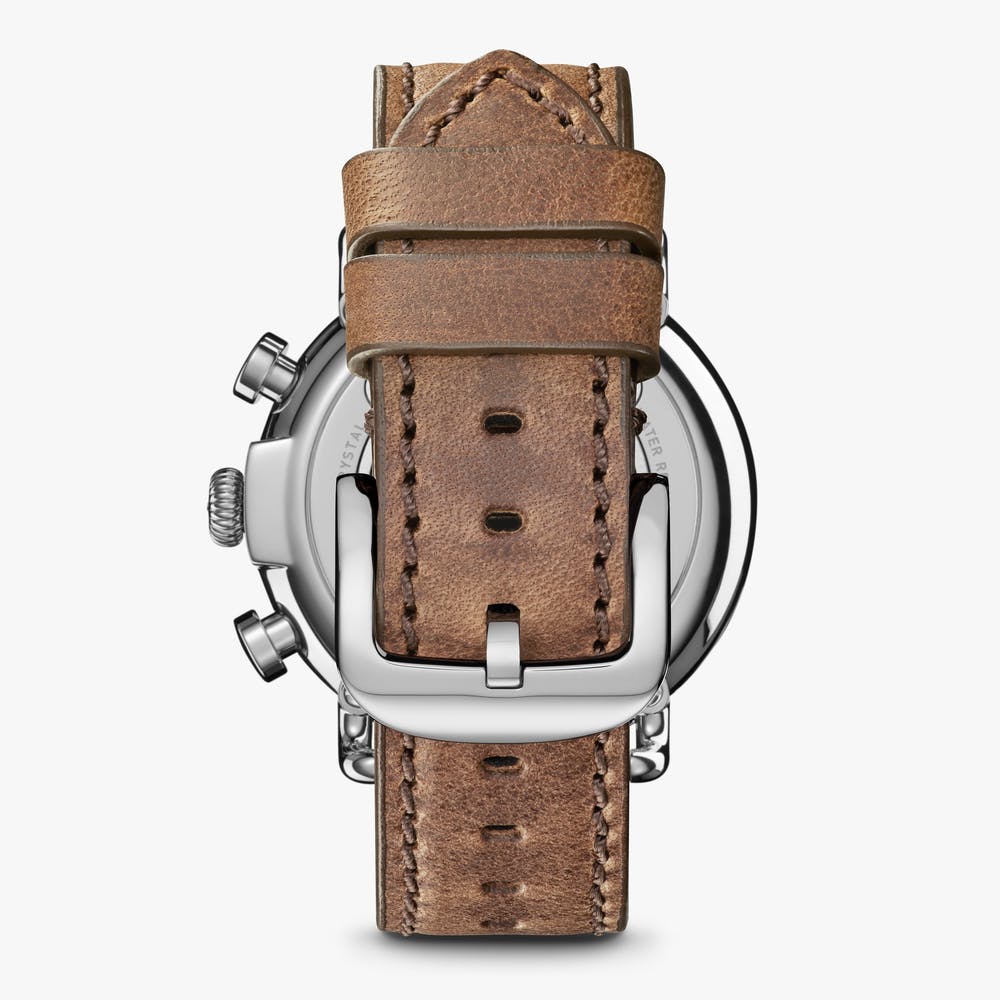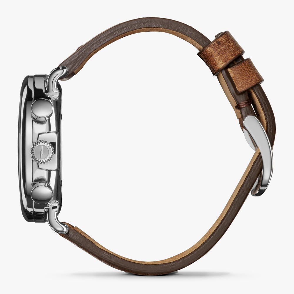 The Runwell's leather band adds a touch of sophistication and comfort, ideal for both casual and formal settings. Embrace the craftsmanship and quality synonymous with SHINOLA Detroit, a brand dedicated to delivering timeless pieces that are as functional as they are stylish. Whether as a meaningful gift or a personal indulgence, the Runwell Chronograph is a testament to enduring style and precision.
