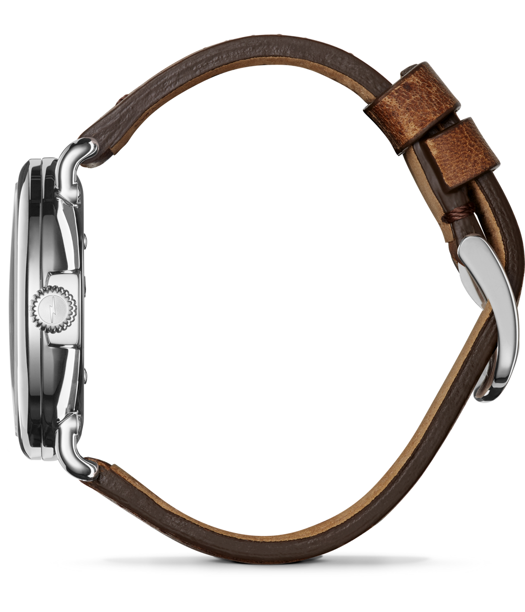 Discover the epitome of refined elegance with the SHINOLA Detroit Runwell Timepiece, a hallmark of superior craftsmanship and style. This exquisite men's watch is designed by SHINOLA Detroit, known for their dedication to quality and timeless design. At its heart, the Runwell features a robust 41mm stainless steel case that gracefully houses a vivid blue dial, creating a striking yet sophisticated visual appeal. The precision of its quartz movement ensures impeccable timekeeping, while the sapphire crystal provides exceptional scratch resistance, maintaining its pristine clarity over time. Complemented by a luxurious leather band, this timepiece marries comfort with enduring style, making it a quintessential accessory for those who cherish life's finer moments. With a water resistance of 5ATM, it is engineered to withstand the rigors of daily wear without compromising its aesthetic allure. Whether as a cherished gift or a personal reward, the SHINOLA Detroit Runwell stands as a testament to your achievements and journey. Experience the luxury of unparalleled craftsmanship, and let this remarkable timepiece elevate your style. Embrace the legacy of SHINOLA Detroit and make a lasting impression. Own a piece of enduring elegance today.