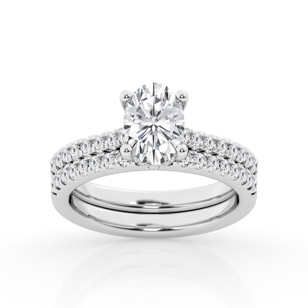 The ReMARKable Designs Side Stone Hidden Accent Lab-Grown Diamond Complete Engagement Ring is a testament to modern elegance and precision. Crafted in 14 Karat White Gold, it features a breathtaking 1 Oval Lab-Grown Diamond with an impressive 2.02 total carat weight, clarity at VS1, and an enchanting E color. Accompanying this centerpiece are 36 Round Lab-Grown Diamonds, adding an extra 0.29 carats of sparkle to this exquisite piece. Available in a size 7, this ring is part of the 'Love Starts Here Collection', a selection that embodies both timeless beauty and contemporary trends.
