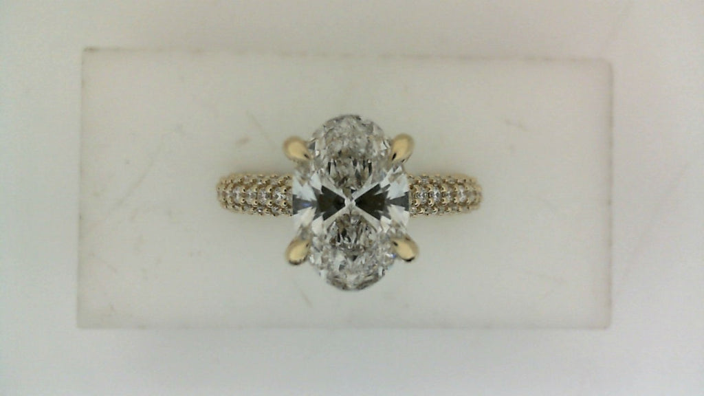 Introducing the ReMARKable Designs Side Stone Lab-Grown Diamond Complete Engagement Ring, a masterpiece that combines elegance and innovation. This exquisite ring features a stunning 2.04ctw oval lab-grown diamond, boasting an impressive color grade of F and clarity of VS1. Accompanied by 92 round lab-grown diamonds totaling 0.73ctw, this ring showcases a harmonious blend of brilliance and sophistication. Crafted in luxurious 14 Karat yellow gold, the ring offers a timeless appeal with a comfortable ring size of 7 and a sleek width of 2.6mm, making it a perfect choice for those seeking a contemporary yet classic design.