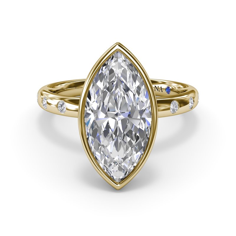 Side Stone Natural Diamond Semi-Mount Engagement Ring in 14 Karat Tan with 16 Round Diamonds, totaling 0.27ctw Ring Size: 6.5 MM Width: 2.5