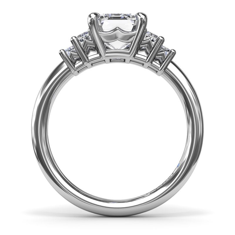 Side Stone Natural Diamond Semi-Mount Engagement Ring in 14 Karat White with 4 Emerald Diamonds, totaling 0.52ctw Ring Size: 6.5