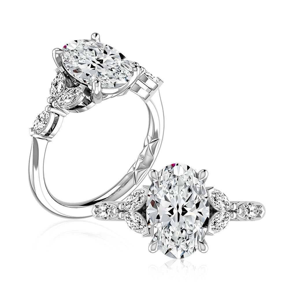 Side Stone Natural Diamond Semi-Mount Engagement Ring in 14 Karat White with 6 Marquise Diamonds, totaling 0.60ctw Ring Size: 6