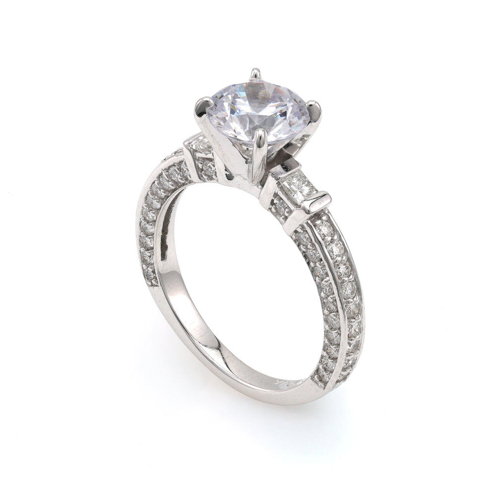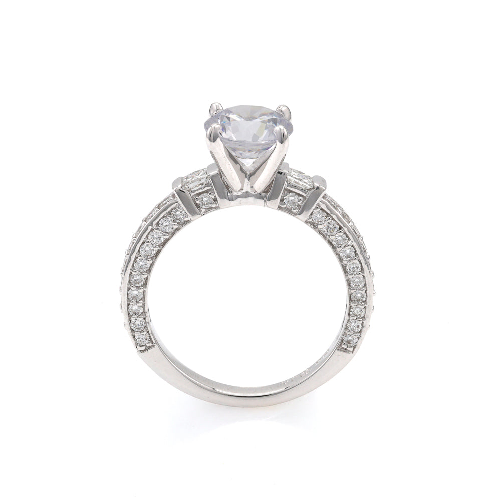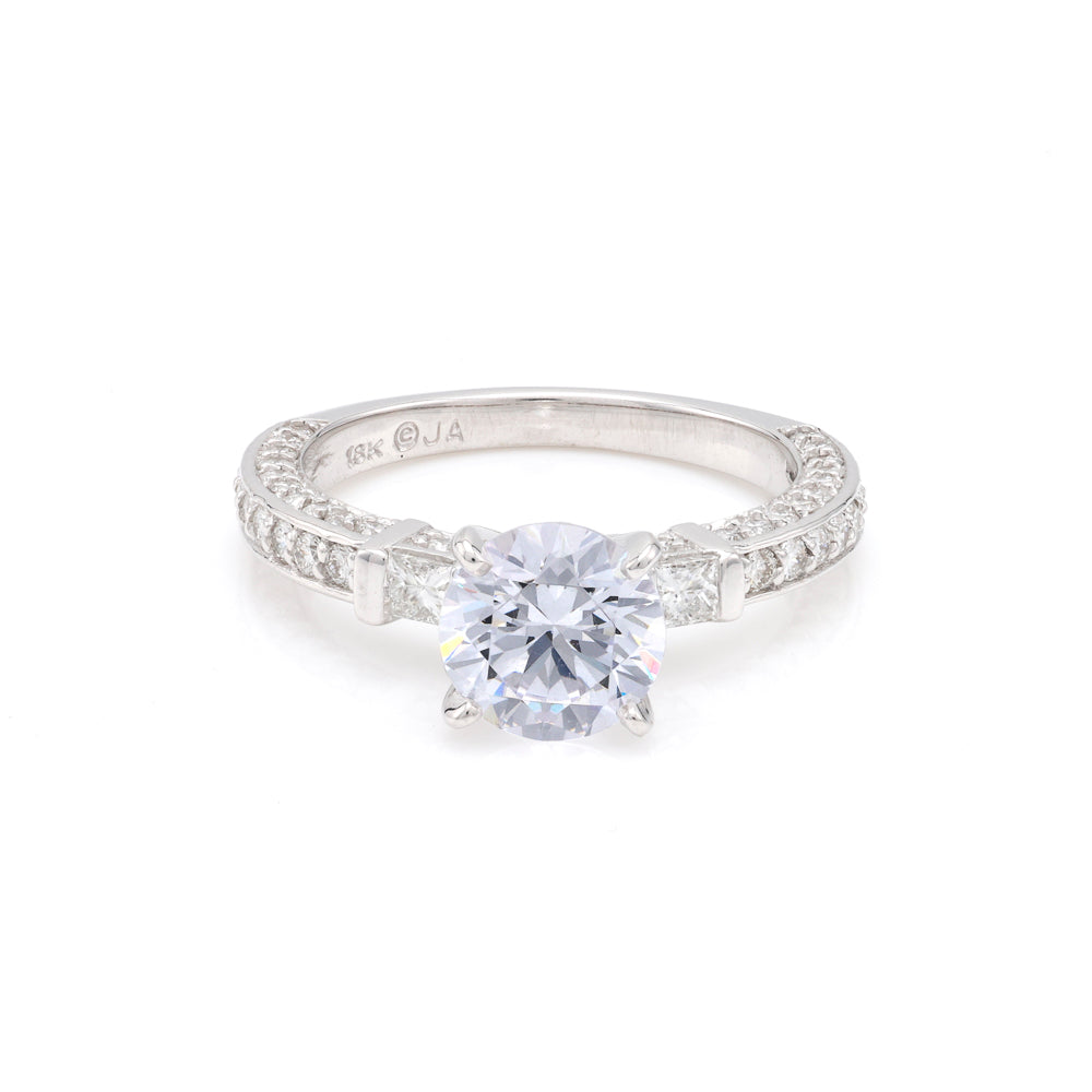Discover the allure of the Side Stone Natural Diamond Semi-Mount Engagement Ring from Marks Estate Dept 1. Fashioned in opulent 18 Karat white gold, this magnificent ring is adorned with 62 round natural diamonds, each meticulously refurbished to reveal their captivating sparkle. With a color grade of G/H and clarity between VS2 and SI1, these diamonds enhance the ring's elegance and sophistication. Perfectly sized at 6.5, this piece is more than just jewelry; it's a testament to your unique journey and cherished milestones. Authenticated by our trusted graduate gemologists, the ring carries a rich heritage, showcasing enduring beauty and unparalleled craftsmanship. Originally valued at $3495, it is now available for an exceptional price of $2097, presenting an incredible opportunity to own a piece of history. Whether you're commemorating life's significant events or indulging in a meaningful self-gift, let this exquisite ring be a shining symbol of elegance in your collection. Embrace the chance to add this timeless piece to your personal jewelry repertoire. Visit Marks Jewelers today and let this ring illuminate your story with its brilliance and enduring beauty.