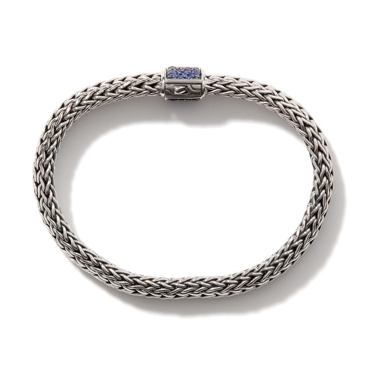 Color Gemstone Bracelet in Sterling Silver White with 13 Round Sapphires, Color: Blue, and 13 Round Sapphires, Color: Black Length: 7.5 Clasp Type: Hidden Plunger Bracelet Type: Station