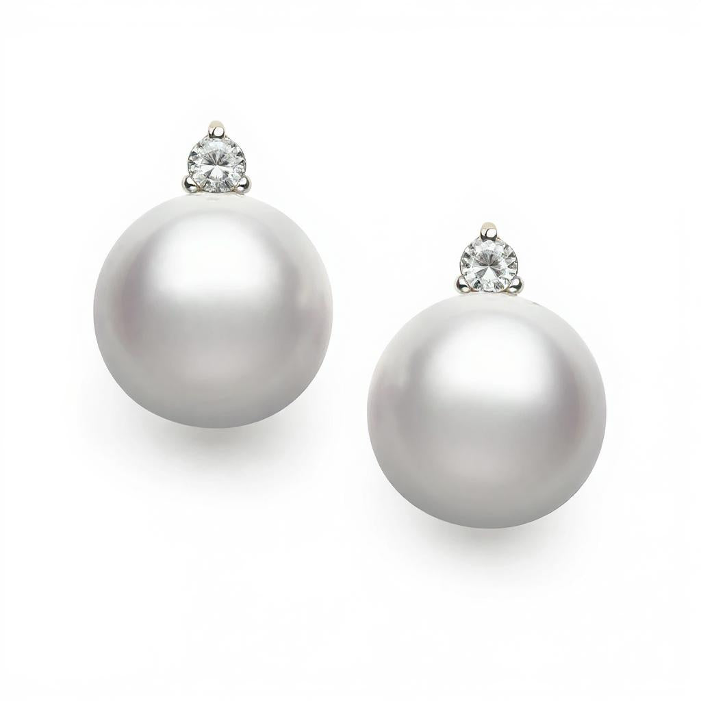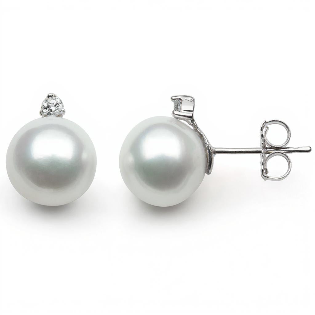 Experience the refined elegance of our Stud Color Gemstone Earrings, a true testament to timeless beauty and superior craftsmanship. These exquisite earrings are adorned with two captivating round pearls, each with a natural luster and measuring between 6mm to 7mm. Expertly crafted in lustrous 14 Karat white gold, their sophisticated design is further enhanced by two sparkling round diamonds totaling 0.03 carats. Selected by our graduate gemologists, these diamonds exhibit exceptional clarity and brilliance, adding an extra touch of sparkle.