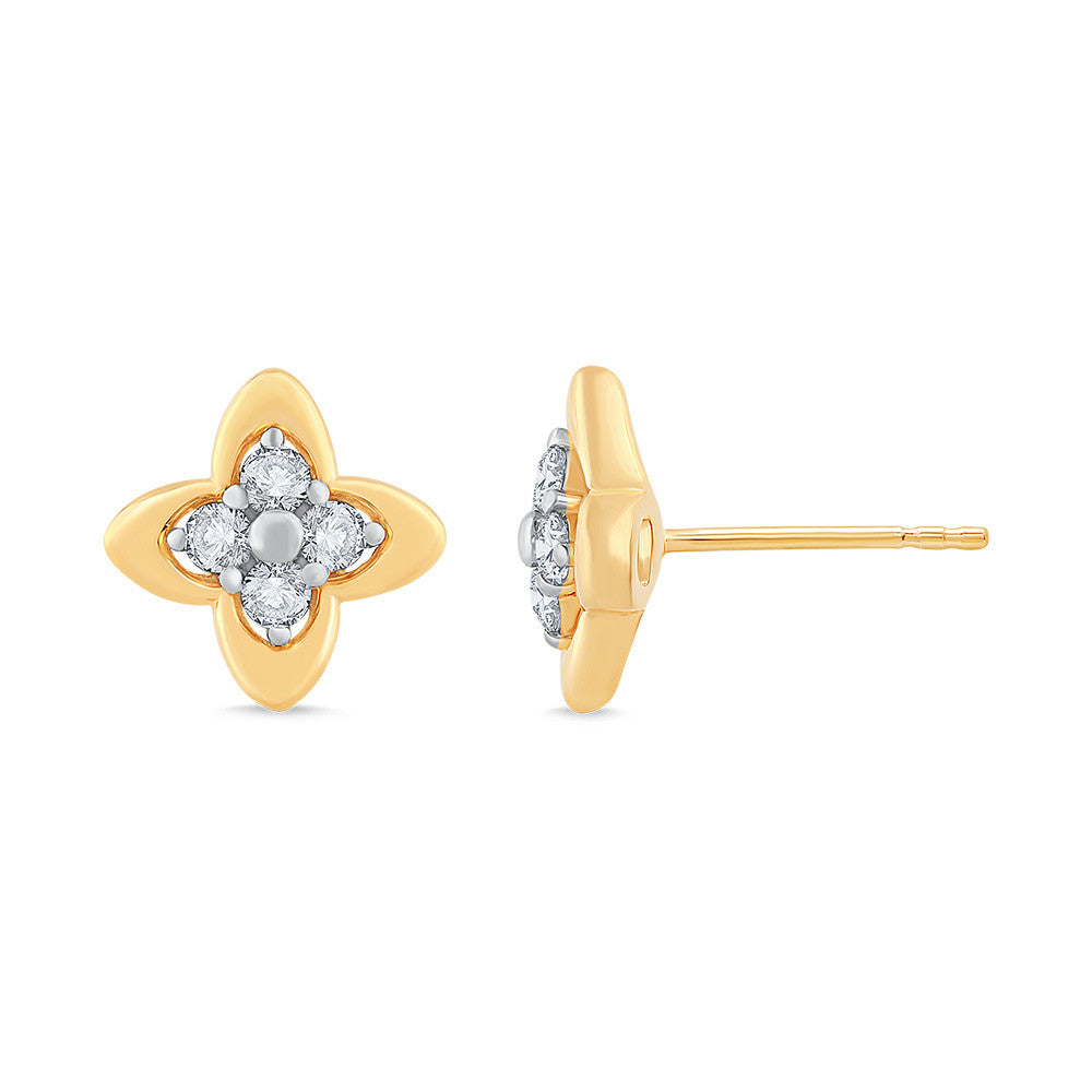 Elevate your jewelry collection with the SDC Creations Stud Natural Diamond Earrings. These exquisite earrings feature 8 round natural diamonds, totaling 0.32 carats, each set in radiant 14 Karat Yellow Gold. The warm golden hue beautifully enhances the natural sparkle of the diamonds, creating a captivating contrast that draws the eye and amplifies their brilliance. Crafted with precision by SDC Creations, these earrings are a testament to superior craftsmanship and timeless elegance, ideal for those who appreciate high-quality jewelry.
