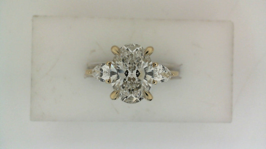 Introducing the ReMARKable Designs Three Stone Lab-Grown Diamond Complete Engagement Ring, an exquisite piece that captures modern elegance and sophistication. Crafted in opulent 14 Karat Yellow Gold, this stunning ring features a slender 1.8mm width band. Its centerpiece is a breathtaking 2.03ctw Oval Lab-Grown Diamond with F color and VS1 clarity, elegantly flanked by two Pear Lab-Grown Diamonds totaling 0.40ctw. This size 7 ring seamlessly blends contemporary design with timeless beauty, making it an exceptional choice for those ready to celebrate their love.