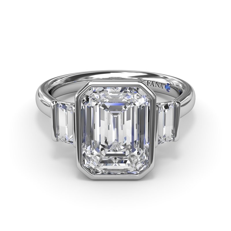 Three Stone Natural Diamond Semi-Mount Engagement Ring in 14 Karat White with 2 Emerald Diamonds, totaling 0.20ctw, and 2 Round Diamonds, totaling: 0.02ctw Ring Size: 6.5