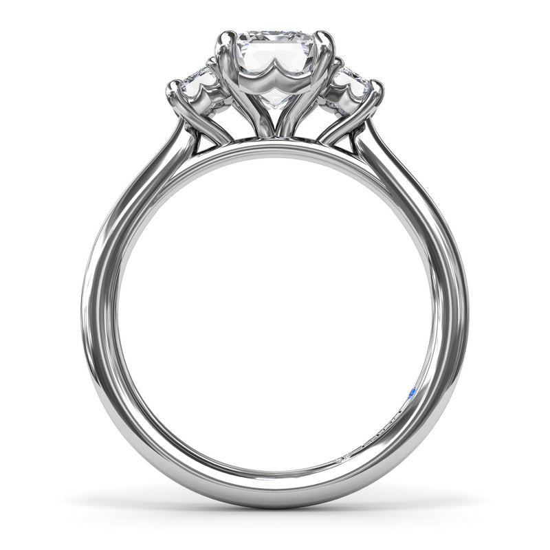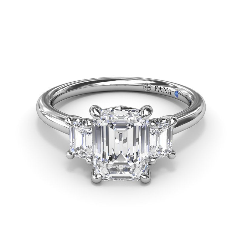 Three Stone Natural Diamond Semi-Mount Engagement Ring in 14 Karat White with 2 Emerald Diamonds, totaling 0.40ctw Ring Size: 6.5